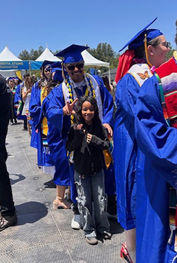 Chavez graduated this past spring with degrees in Latino and Latin American studies and sociology. He walked across the stage in both UCSC’s Chicanx/Latinx and Rachel Carson College commencement ceremonies, hand in hand with his youngest daughter.
